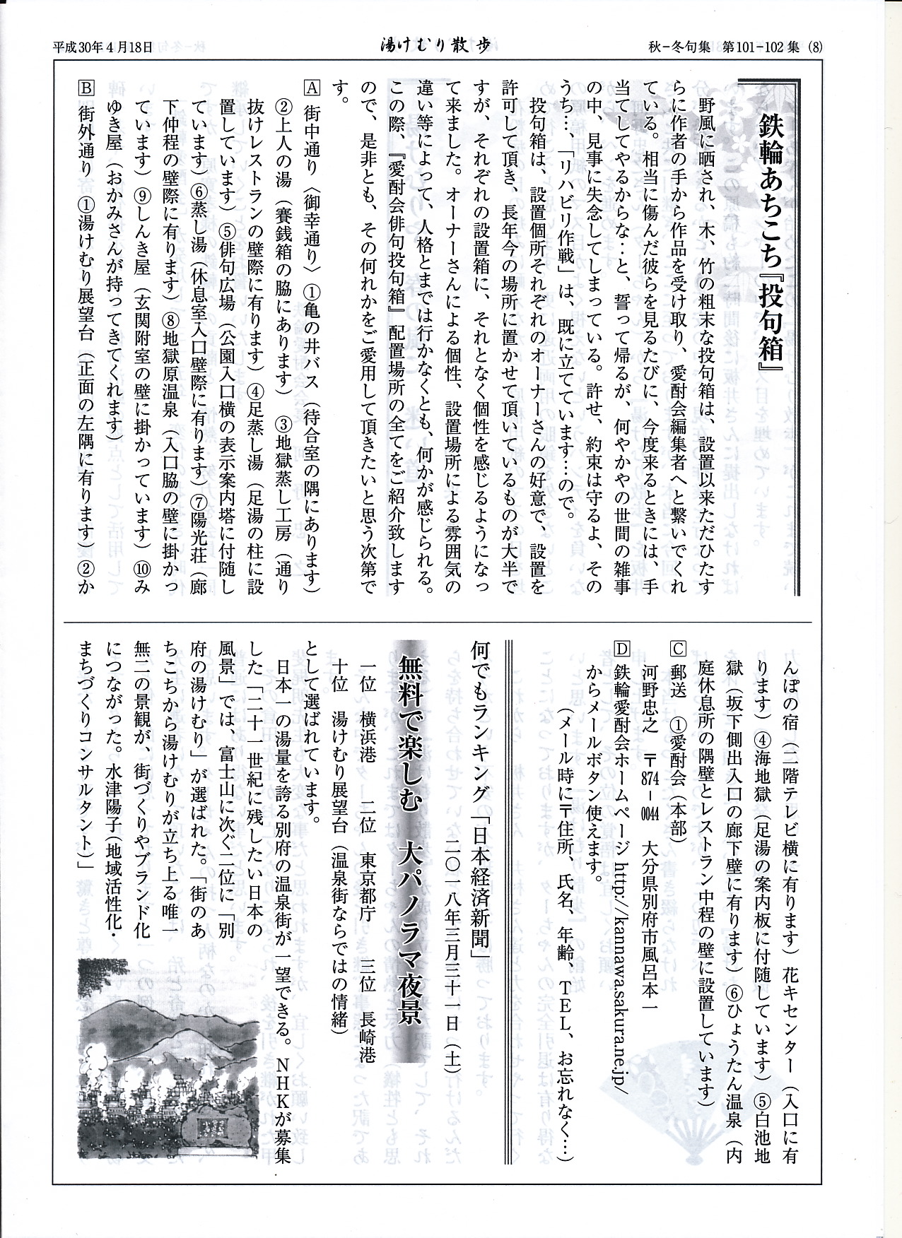 (鉄輪俳句筒湯けむり散歩第101−102集より)
