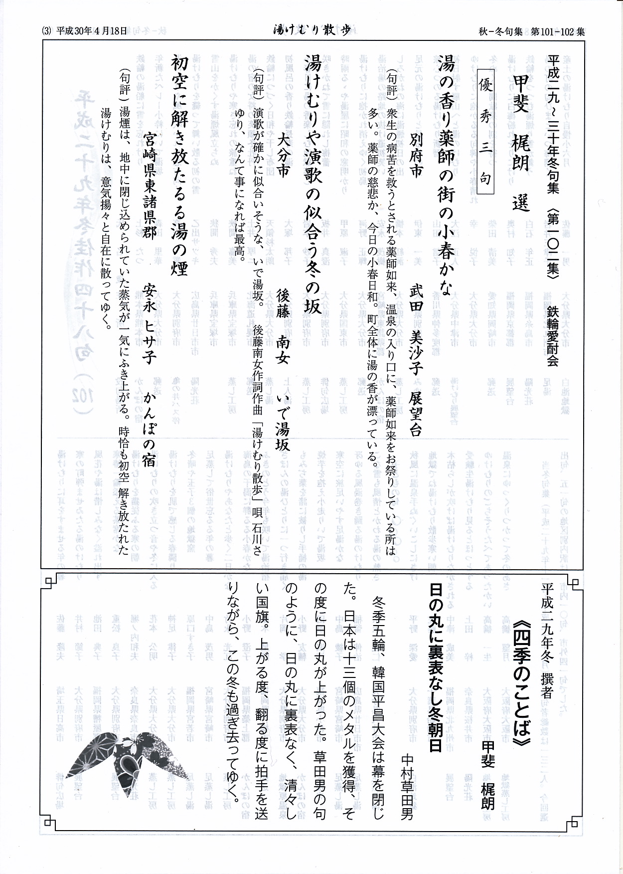 (鉄輪俳句筒湯けむり散歩第101−102集より)
