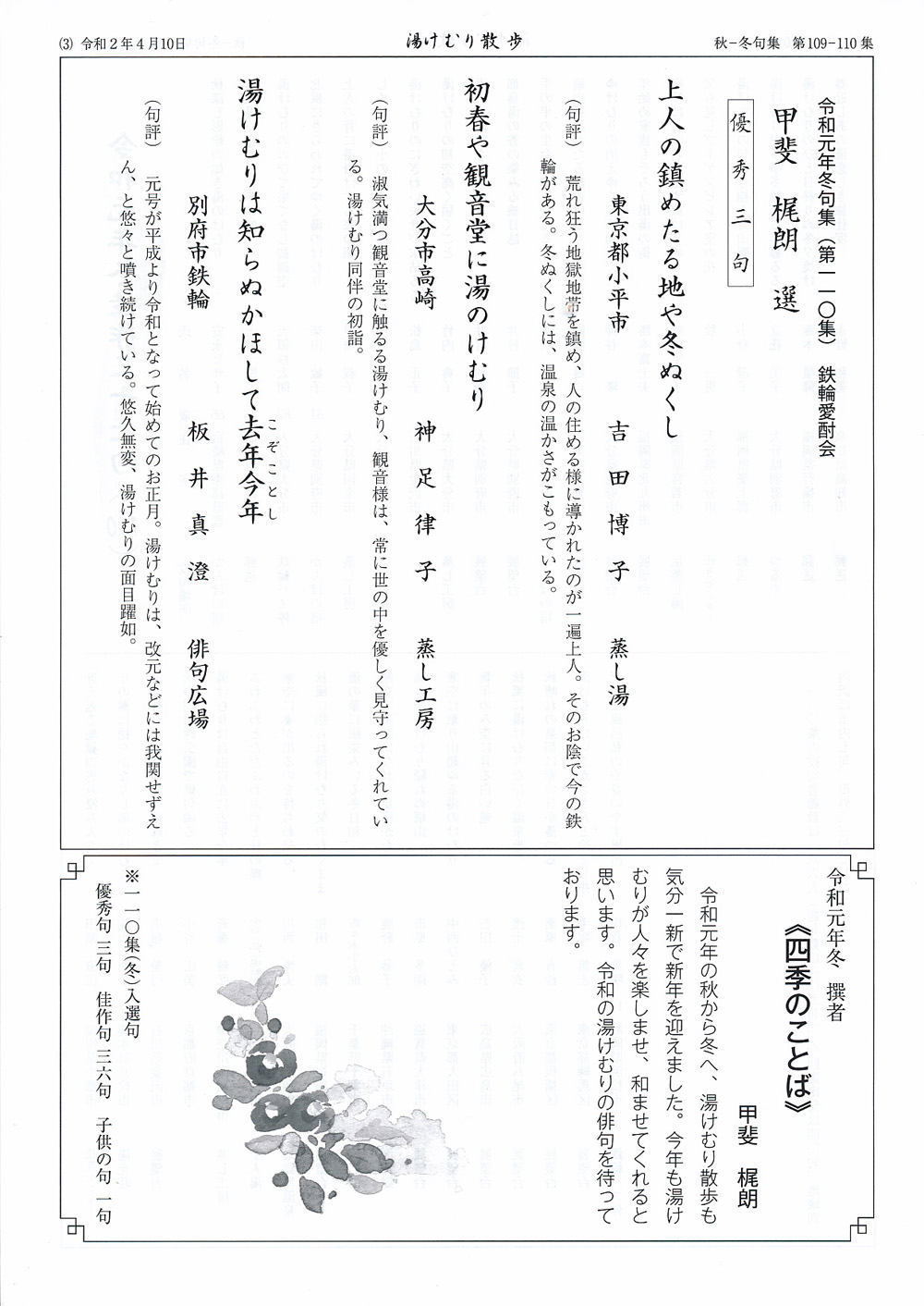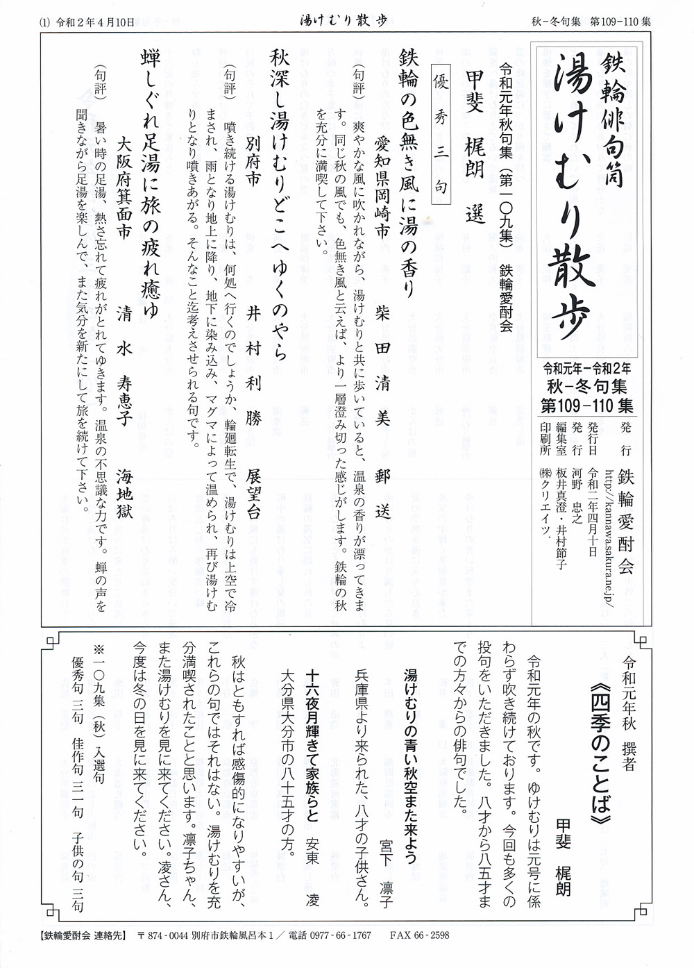 (鉄輪俳句筒湯けむり散歩第109-110集より)