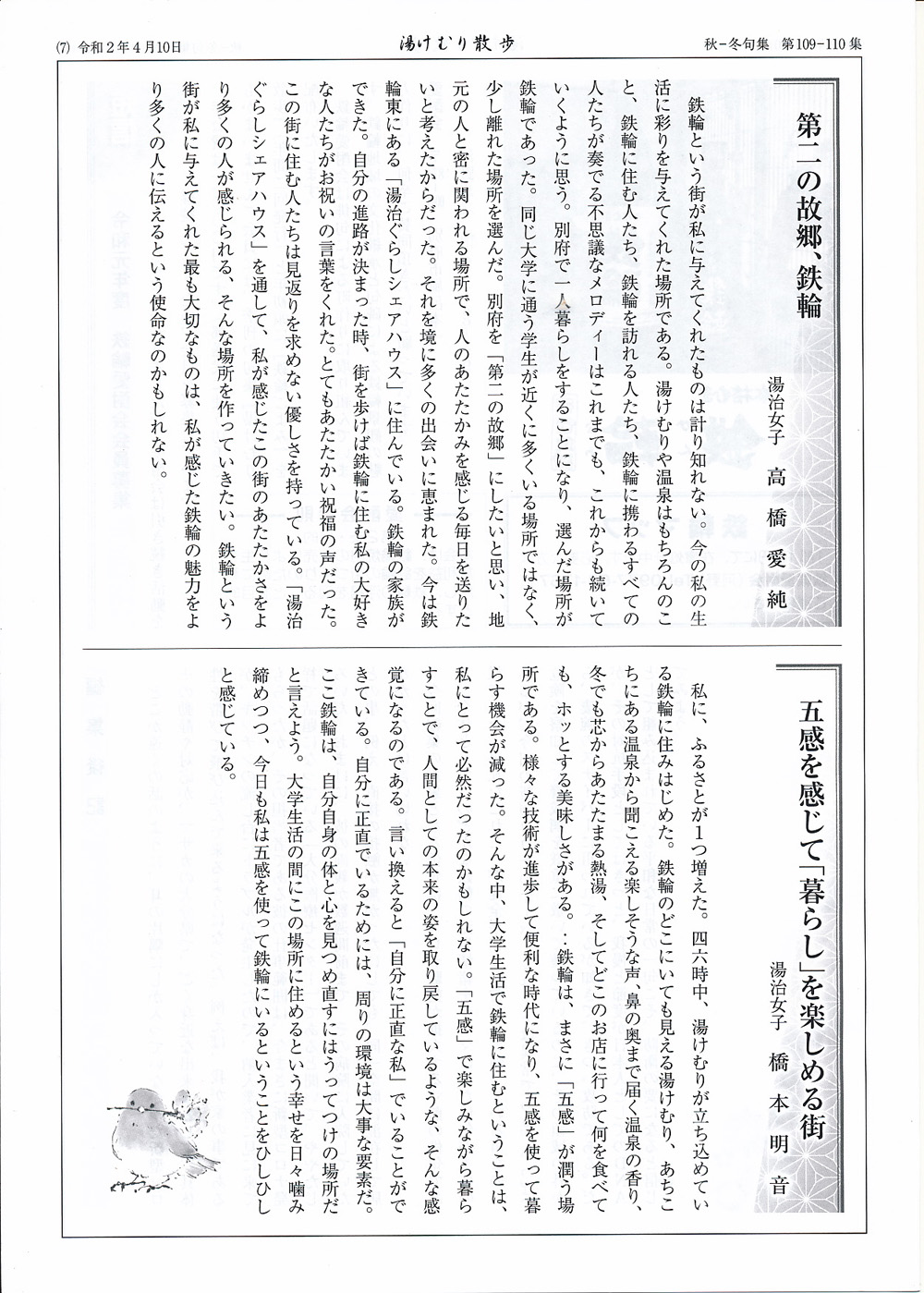 (鉄輪俳句筒湯けむり散歩第109-110集より)