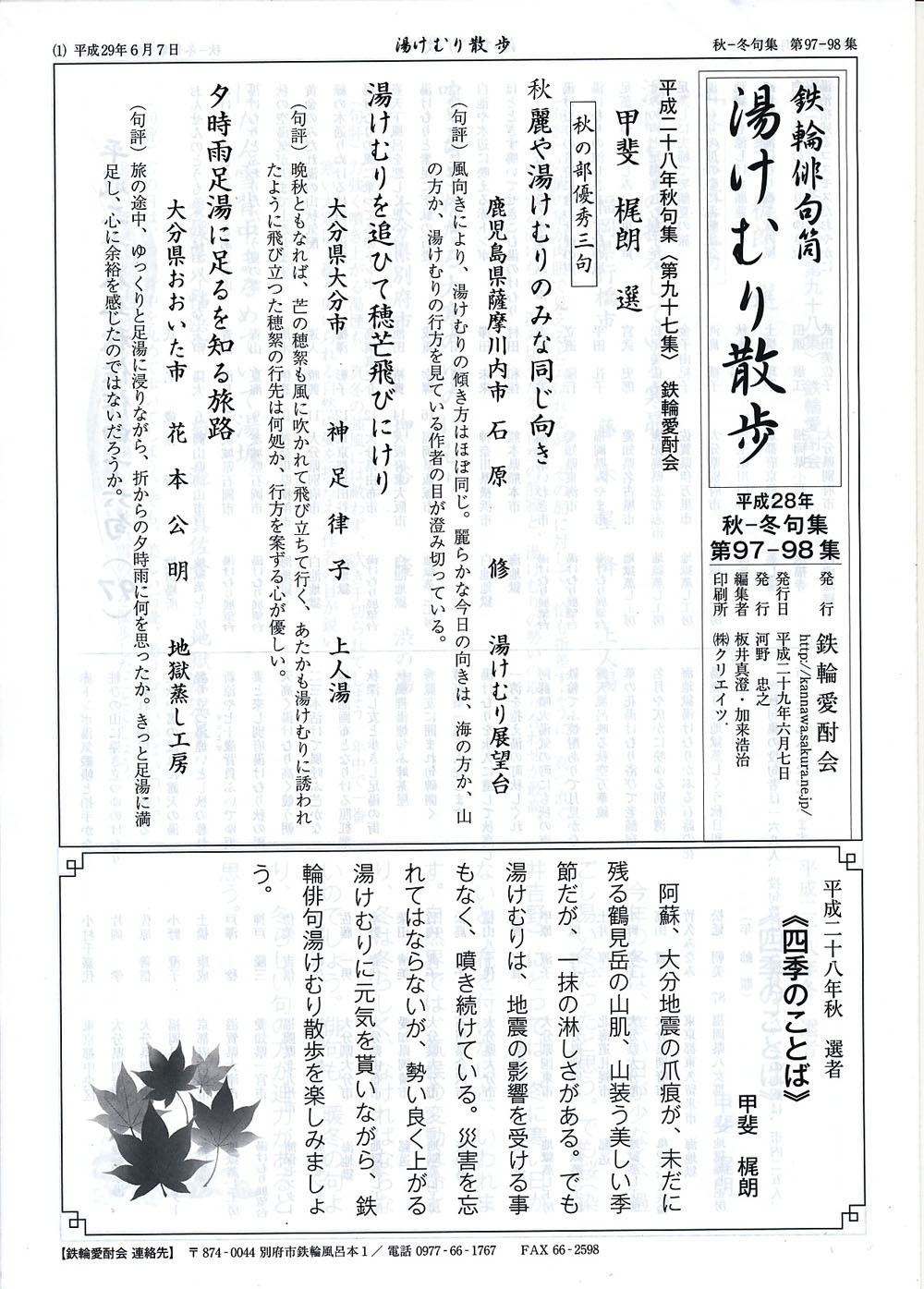 (鉄輪俳句筒湯けむり散歩第97−98集より)